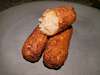 Die Kroketten nun komplett (!) abkühlen lassen. Nun kann man sie einfrieren und später verwenden, direkt in der Fritteuse frittieren, in der Pfanne in etwas Öl braten oder auch im Ofen mit etwas Öl bepinselt im Ofen (bei ca. 180-200°C, bis sie golden sind) fertig backen.